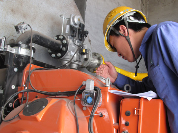 8月5日,伟德体育公司复合肥车间装置检修重点技改项目——干燥窑热风炉“燃煤改燃气”技改试点火一次性成功。改造后的燃气热风炉采用智能控制,操作安全稳定,热效率高,经济环保。图为该车间技术人员正在观察热风炉内燃烧情况。