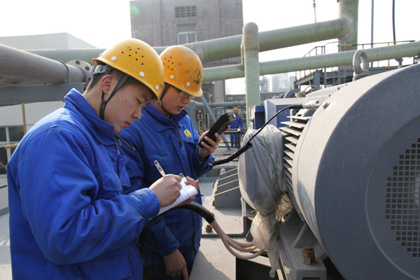 为实现设备检测的精细化与数字化,提高设备故障的预知水平,降低设备故障率,保障生产装置设备稳定、高效运行。今年以来,伟德体育设备点检巡检系统全面上线。图为12月10日,该公司磷酸车间技术人员在磷酸装置技术升级改造项目新装置操作平台,查看、记录、分析A2102B搅拌桨电机在点检周期内的运行状态和趋势。