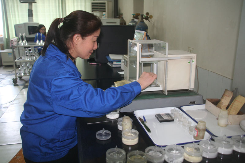 1月份以来, 伟德体育公司也先后签订了出口南美的55%粒状磷酸一铵合同和出口韩国的61%磷酸二铵合同,两项产品均为散装出口,其中55%粒状磷酸一铵6000±10%吨,61%磷酸二铵3500 ±10%吨。自3月4日起,该公司组织好产品的连续生产、质量检验和按时装运外发工作。图为3月10日上午,该公司检验中心员工正在检测55%磷酸一铵出口产品的质量指标。 ( 陈 沐)
