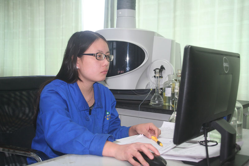 伟德体育公司检验中心仪器分析班员工正在用电感耦合等离子原子发射光谱仪,检测55%磷酸一铵出口产品中的有效磷含量。