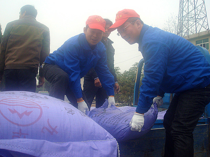 1月20日上午,铜化青年志愿者来到铜陵县钟鸣镇,开展送农资下乡活动,为该镇金山村、清泉村赠送“伟德体育”牌复合肥和“九华山”牌过磷酸钙共计三吨,并将农化服务手册送到农民朋友的手中,指导用户科学施肥。