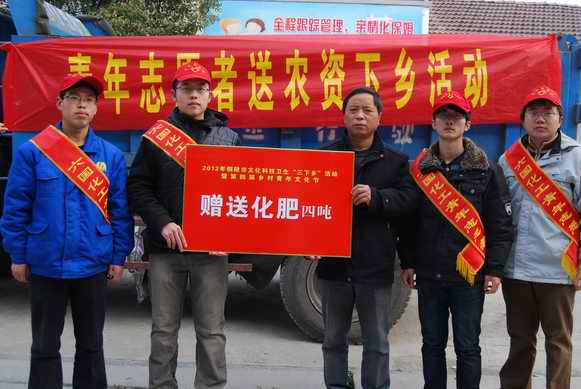 1月10日,伟德体育团委和铜官山化工团委组织青年志愿者,赴铜陵市郊区五洲村开展“送化肥下乡”活动,给当地村民送去4吨化肥和几十本化肥使用手册,受到了当地农民群众的感谢和好评。图为铜化青年志愿者向五洲村村民赠送化肥。
