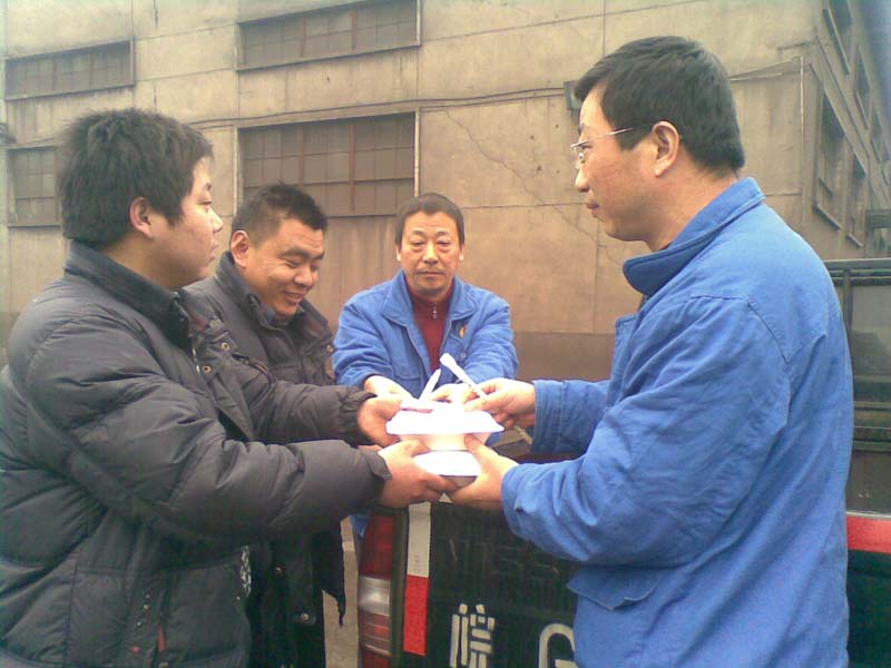 图一:停电期间,近三十辆外地液氨槽罐车,停靠在罐区车间及铜港路指定地点,等待公司供电恢复后按序卸氨。供应二公司采购业务员于20日中午、傍晚,为液氨槽罐车司机和押运员们送去了热饭菜和矿泉水。